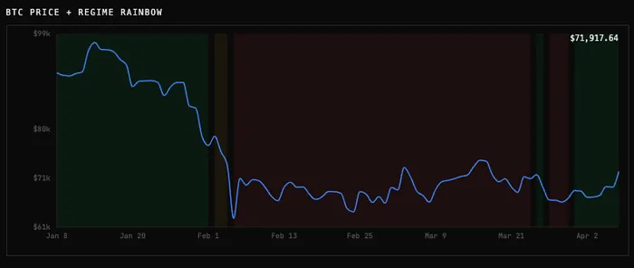 BTC has moved from $68,228 at entry to $71,918. That is roughly a 5.4% gain, quiet and unremarkable on a chart. But that is exactly what healthy early-stage Cooperation looks like. The returns in C regimes are back-loaded and not front-loaded. Historical mean forward return at this stage sits around +5% by Day 20 and roughly +17% by Day 60. The first week is not where the edge lives.