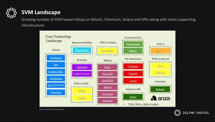 The report is structured to first explore the SVM and its recent decoupling from validator client—a development that has unlocked new possibilities for modularity. We’ll then discuss the need for L2s on Solana and how SVM-based L2s are being implemented not only within Solana but also on Bitcoin and Ethereum. This discussion will extend to the growing ecosystem of L2s within Solana and how this SVM adoption is reshaping the broader market, strengthening Solana’s strategic position, and influencing its developer community.