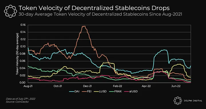 📊 Token Velocity of Decentralized Stablecoins Drops