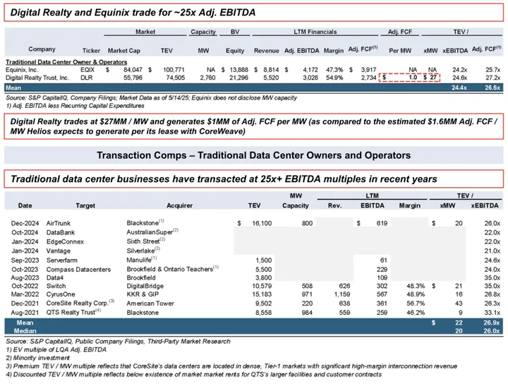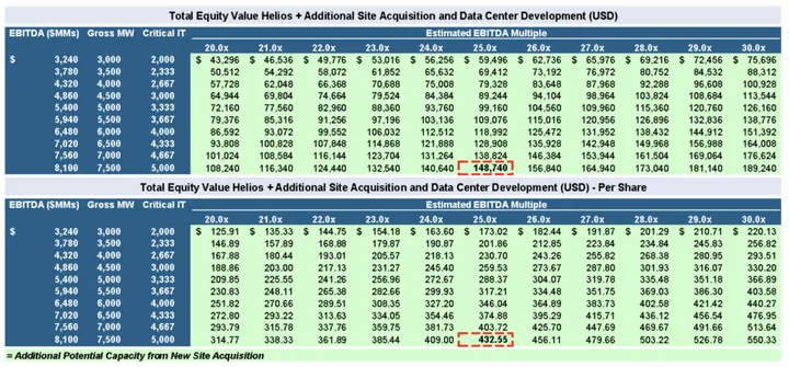 - Assumes economics are in line with existing CoreWeave lease, which provides for $1.1MM EBITDA per Gross MW and $1.6MM EBITA per Critical IT capacity MW