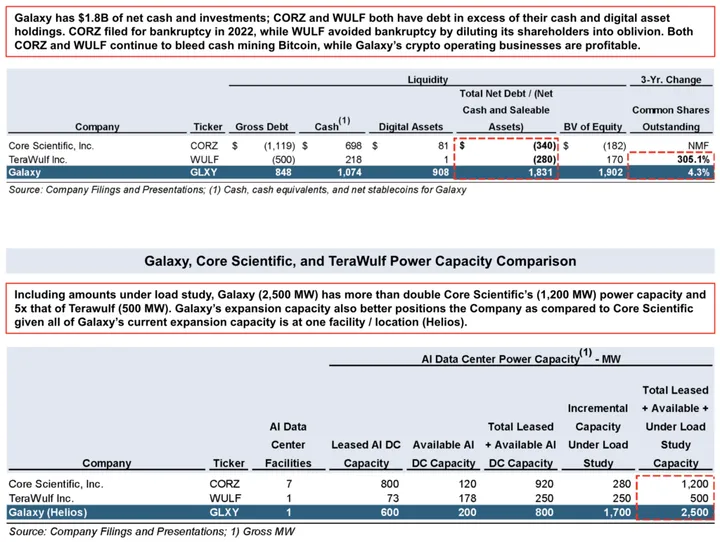 Galaxy, Core Scientific, and TeraWulf Balance Sheet