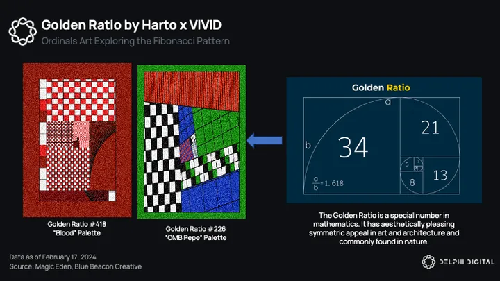 Golden Ratio stands out because it is both “recursive” and “cursed”. Recursive inscriptions enable referencing data from other inscriptions. It could become the “grail” of recursive collections due to its recursive artistry, beautifully expressing the golden ratio, a hallmark of natural proportionality.