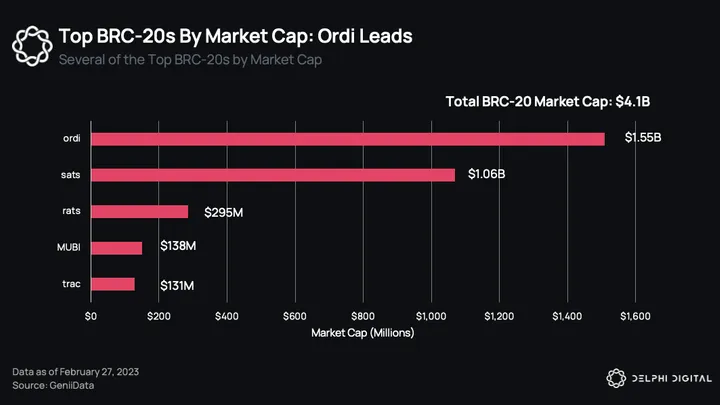 The current combined market capitalization for BRC-20 tokens stands at an impressive $4.1 billion, with the leading token, ordi, accounting for $1.5 billion of this market cap. This gives us a glimpse into the potential scale of the Runes market.