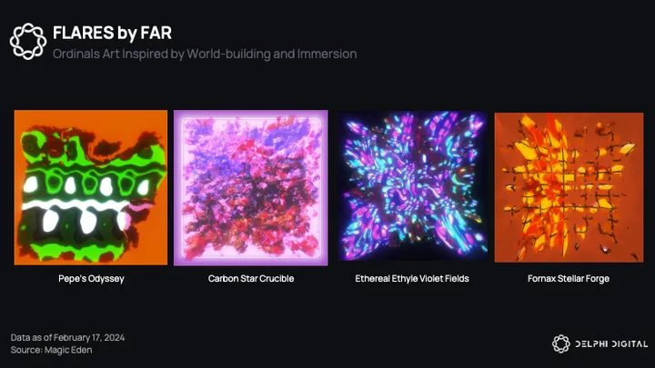 0xfar is known for being the artist behind Taproot Wizards and Quantum Cats, two of the most popular Ordinals projects. In February 2024, he introduced FLARES, a generative art collection of 512 pieces within the PARALLAX series.