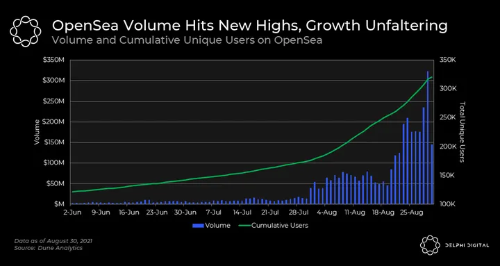 - Since June, the number of unique users that have interacted with OpenSea has more than doubled thanks to the NFT mania.