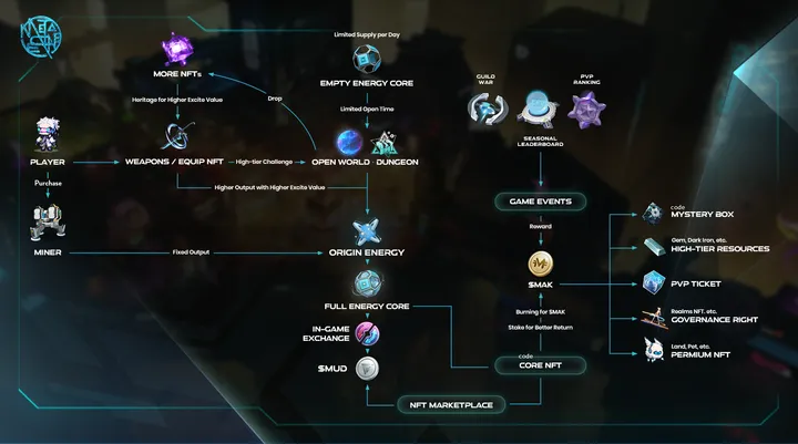 Having worked on many commonly exploited Chinese MMORPGs, the team understood the risks and removed MUD synthesis along with the release of the most recent open alpha. Currently, ore can either be traded on the marketplace for MUD or synthesized into Ferron and Origin Energy (two off-chain resources that are used for high-level equipment enhancements and generating MAK yield, respectively).