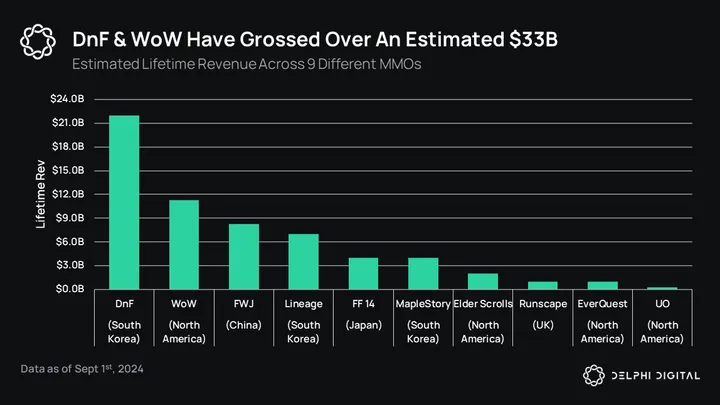 As opposed to Western MMORPGs, Eastern titles typically bet on a free-to-play approach, are often cross-platform, and come with much deeper monetization potential by design. The emphasis on grinding instead of questing, paired with the ability for players to accelerate their progression through in-game spending, has led Eastern MMORPGs to generate significantly more revenue compared to their Western competitors. For example, compared to WoW’s estimated $11.3B in lifetime revenue, Dungeon Fighter Online (DnF), a South Korean MMO, has generated approximately $22B in revenue since its launch in 2005 despite having fewer players.