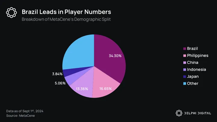 MetaCene’s early player base is currently divided into five core demographics: Brazil (34%), Philippines (17%), China (13%), Indonesia (5%), and Japan (4%), along with several other regions (namely South Korean, Vietnam, Singapore, and North America). Note that this split has remained relatively constant throughout all playtests.