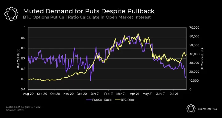 - Over a billion dollars of options open interest were wiped out after July’s contracts expired. The aggressive call option buying we saw last week has simmered down as well. This is normal, and open interest usually recovers its lost ground as long as sentiment and demand remain intact.
