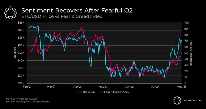 - After a long period of fear, sentiment in the market is turning around in spite of recent news concerning crypto provision in the U.S. government’s infrastructure bill.