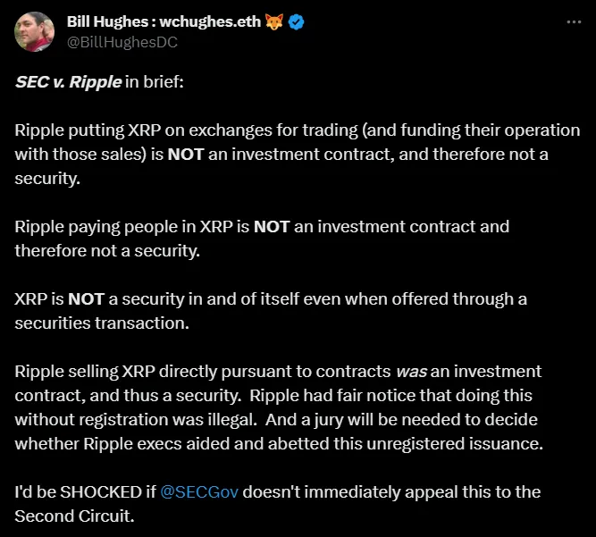 In my opinion, the most important factor of this outcome is that the judge determined that there are nuances involved over *when* something is and isn’t a security, and found that at some times, an $XRP token can be a security, and at times can NOT be a security. This aligns with former SEC director Bill Hinman’s statements in the renowned Hinman Docs. Sure, XRP may have been a security when it was initially created, but what about now, nearly 10 years later? Part of the allure of magic internet money is the ever-changing characteristics of the coins we know and love.