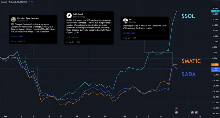 It’s tough to state just how large of a win this is for the industry. Just a few weeks ago, when the SEC sued Coinbase for operating as an unregistered securities exchange, it named some of the largest cryptocurrencies such as Cardano, Polygon and Solana as examples of the securities that Coinbase was hosting. In response to this, Robinhood announced it would be delisting these 3 cryptocurrencies almost immediately after the announcement of the SEC’s lawsuit.