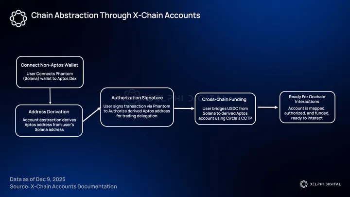 The testnet roadmap includes a cross-chain risk engine, gas-free cross-chain deposits, and an encrypted mempool for MEV protection. Through X-Chain Accounts, users will onboard directly from Ethereum or Solana without bridges, wallet switching, or paying APT gas fees, addressing the persistent cold-start problem of navigating an unfamiliar blockchain ecosystem.