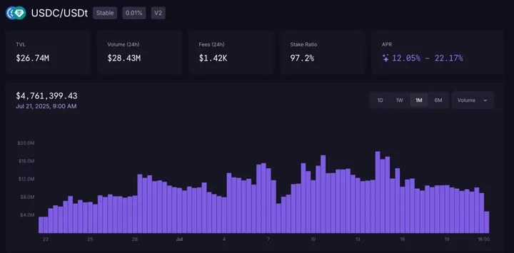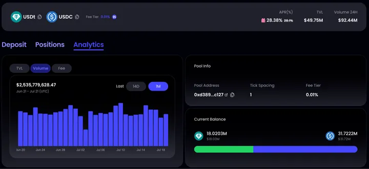While the APR is lower than that of APT pairs, the risk profile is fundamentally different. Liquidity providers face minimal impermanent loss risk since both assets maintain stable value. The higher TVL of $49.75 million compared to APT pools reflects this appeal to risk-averse capital seeking steady returns without volatility exposure.