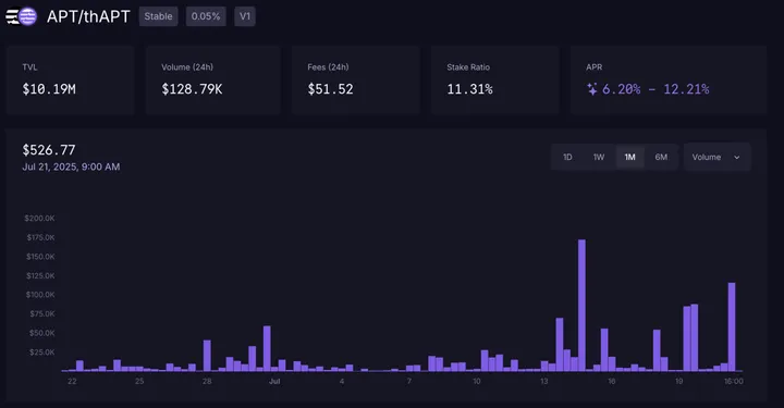 With $10.19 million in TVL and $128,800 in daily volume, this pool appeals to users wanting leveraged APT exposure without impermanent loss risk from pairing with stablecoins.