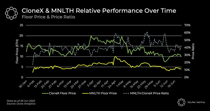 - Ratio of MNLTH price to Clone X: 40.9%