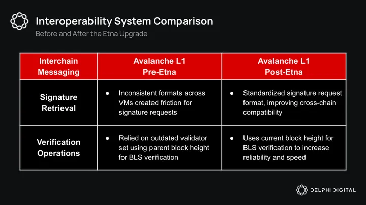 The Etna upgrade introduced two key updates here that made ICM faster, more secure, and easier to work with. ACP-118 introduced a standard messaging format that improves cross-chain compatibility and makes implementation easier, while ACP-151 improved validator set response time to ensure quicker and more secure message validation. Although not as significant as ACP-77, these updates were key to improving the builder experience and security of the entire cross-chain system.