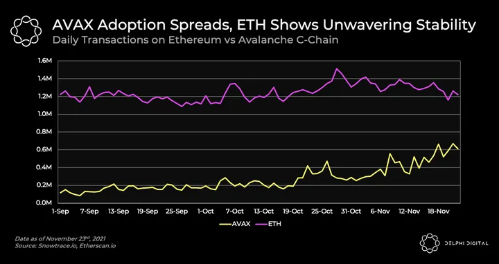 - There is still no defined winner yet as Ethereum usage remains strong. Nonetheless, Avalanche is showing itself to be a formidable competitor. On top of advocacy from notable Crypto Twitter influencers, one of the main reasons for Avalanche’s success is due to Avalanche Rush, an ecosystem incentives program for attracting users to interact with projects that deploy on Avalanche (like Aave and Curve).