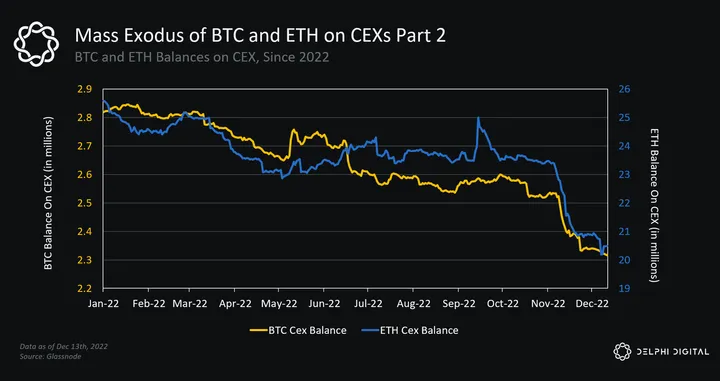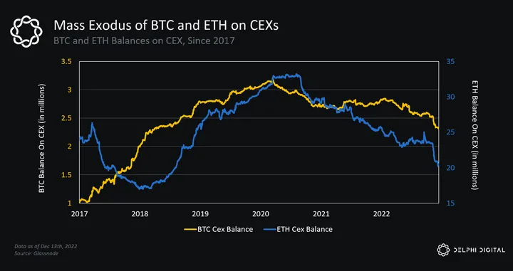- In a year seemingly filled with black swan event after black swan event, one of the main themes of 2022 has been the mass exodus of crypto assets from centralized exchanges.