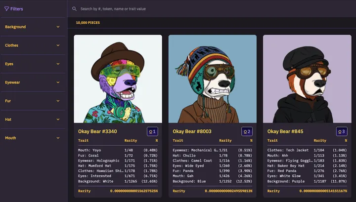 - The big winner for the week is the Okay Bears on Solana, a PFP collection which has seen huge trading volumes rivalling some of the top collections on Ethereum. Interestingly, this week we saw several derivatives of top Solana NFT collections being minted on Ethereum. The most prominent of these was NotOkayBears (similar to OkayBears but facing left instead) but also include others such as Ethereum Monkey Business, and NotDeGods.