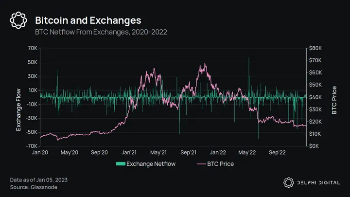 Throughout 2022, we have seen Bitcoin flying off exchanges. The trend we see for Bitcoin and CEXs is that holders have been taking BTC off exchanges and into self-custody — especially after the collapse of FTX.
