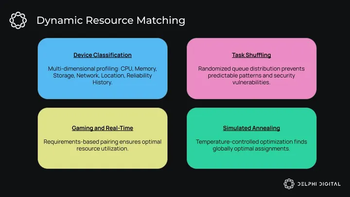 WebAssembly provides a secure runtime environment. Dynamic resource matching algorithms efficiently pair tasks with appropriate devices. Flexible verification mechanisms adapt to different computational requirements. The result combines the best aspects of centralized and decentralized approaches.