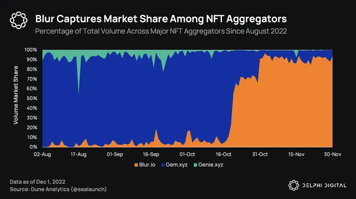 📊 Blur Captures Market Share Among NFT Aggregators