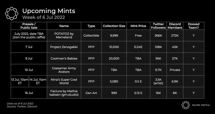 - I want to reiterate that in the current state of the NFT market, minting new projects or buying them on secondary markets is extremely risky. I suggest participating only in projects you resonate with and are personally excited about.