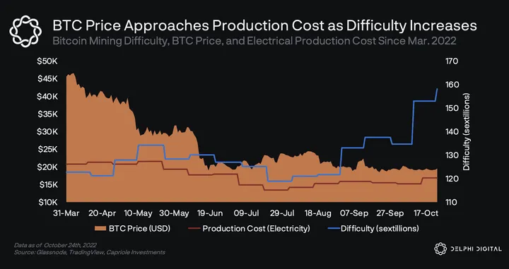 đ BTC Price Approaches Production Cost as Difficulty Increases