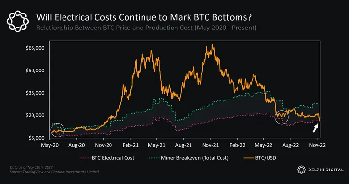 Furthermore, with the recent sell-off caused by FTX contagion, BTC actually traded beneath its current electrical cost of ~$17k (estimated based on research from Capriole Investments Limited).