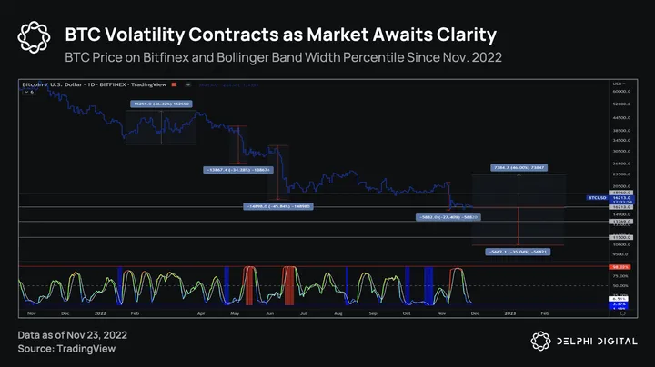 - While the fallout from the FTX collapse spreads, BTC finds itself in limbo. In case of a significant price move, the BBWP indicator can set expectations and provide important context.