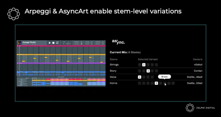 Other audio primitives like Async Art and Arpeggi are enabling music NFTs to be broken down to the stem level. (A stem is an individual sub-tracks such as a drum pattern or bass line.) While perhaps a niche appeal, they have the potential to become collectors’ items.