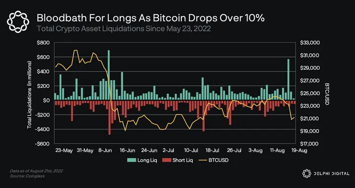 - On August 19, crypto markets witnessed a major plunge as we saw over $562 million worth of long positions getting liquidated, the largest amount since the liquidation cascade in June.