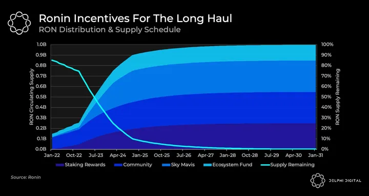 - RON staking will incentivize holders to lock up their tokens to help secure the Ronin network in exchange for RON rewards. Validators will be required to stake 50,000 RON once Ronin DPoS is live. This will be fairly gated in early phases so it will likely be an available option only for select participants. The majority will instead delegate their RON to their preferred validator to stake on their behalf in exchange for a portion of their RON staking rewards. Revenue generated by validators will comprise of Ronin gas fees, Dapp revenues, and RON staking issuance.