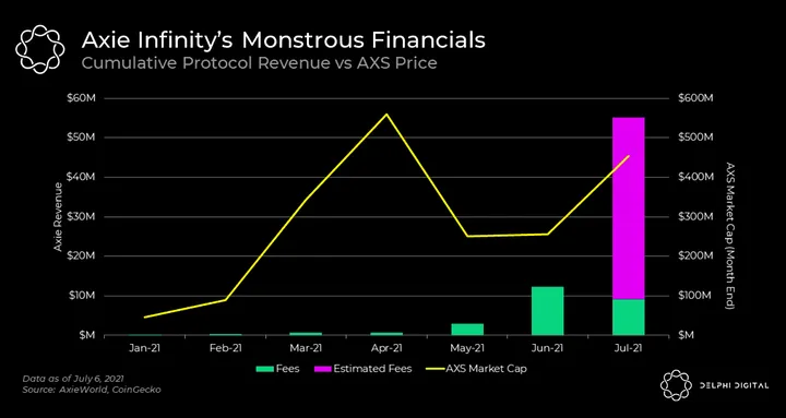 - In the first five days of the month, Axie earned $9.2 million, or 75% of June’s entire revenue . Per this growth trajectory, Axie’s expected revenue in July is a whopping $55 million.