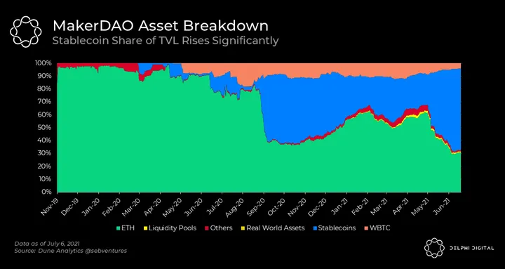 Stablecoins Dominate Maker’s Vault Mix