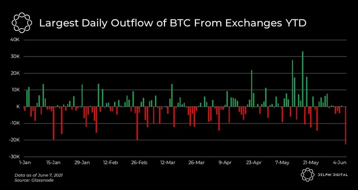 - Yesterday marked the largest daily outflow of BTC from exchanges year-to-date, with nearly 22,500 BTC leaving various exchange wallets. In this case, Kraken is the main culprit for the BTC outflows, accounting for 18,019 of the negative net flows.