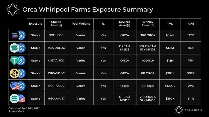 - Rewards: The rewards are detailed below for each Whirlpool. Pools will open for deposits on April 25 and rewards will begin on April 26 at 12:00 UTC
