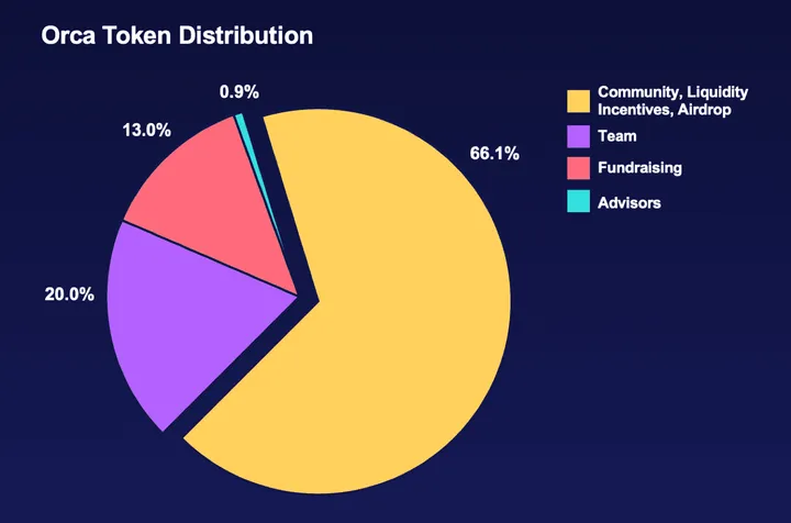 - 66.1% (66.1M ORCA) is reserved for the community.