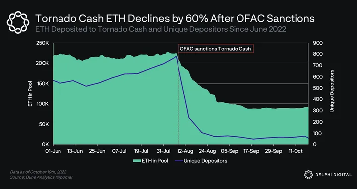 ETH Deposited in Tornado Cash Declines by 60% After OFAC Sanctions