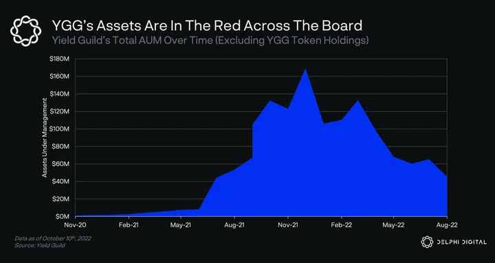 - In the chart above, we have Yield Guildās total AUM over time excluding their treasury YGG token holdings.