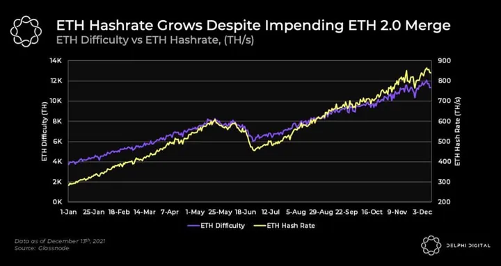 - ETH suffered a similar fate as BTC when Chinese mining farms were shut down. However, the Ethereum network recovered in just under 2 months — a far quicker trajectory than BTC. Surprisingly, Ethereum’s difficulty and hash rate continued to soar and doesn’t seem to be stopping.