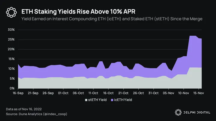 - As a result of the increased rewards, the yield earned by recursive borrowing strategies such as icETH has also reached an all-time high of 25.5% since the Merge.