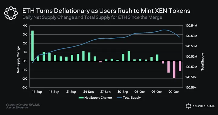 - Since the Merge, ETH has remained inflationary due to low levels of on-chain activity and gas fees. However, the rush to mint XEN tokens has led to increased on-chain activity, turning ETH deflationary.