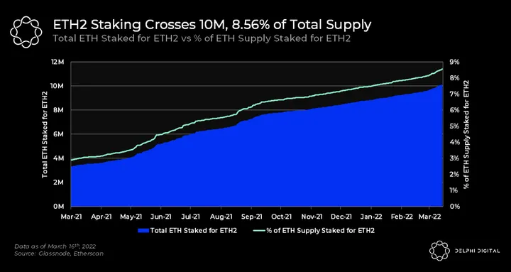 - Over 10M of ETH has been staked in the ETH2 deposit contract, representing 8.56% of the total ETH supply.