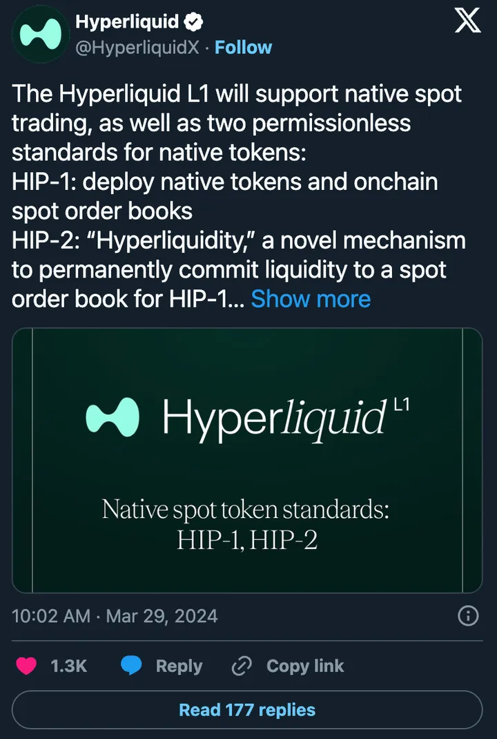 While an oligopolistic market structure for market making does feel antithetical to the ethos of DeFi, it is worth noting some attempts to solve this. Hyperliquid, who recently announced they will be offering spot trading, also announced that they