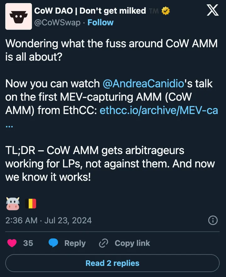 Despite the aforementioned headwinds, the AMM camp is making strong progress on LVR mitigation. CoW Swap’s CoW AMM (f.k.a. function-maximizing AMM) stood out at ETHCC as a clever LVR-aware AMM design that aims to return LVR back to LPs through an auction design. Moreover, by enabling solvers to bid to rebalance CoW AMM pools whenever there is an arbitrage opportunity, this model theoretically should make passive LPs meaningfully more profitable.