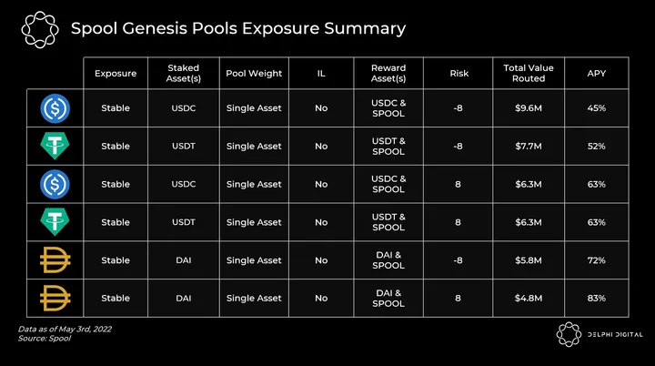 - Genesis Spools is not to deliver maximum yield or to access cutting-edge high yield strategies. Instead, the intention of the Genesis Spools is to showcase and validate the architecture of the Spool contracts on mainnet.