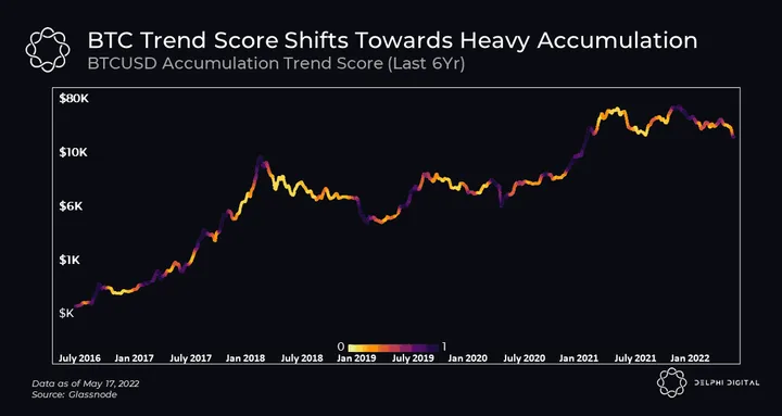 - In the wake of the most recent market drawdown, the Bitcoin trend accumulation score is nearing 1. In fact, this is the first time that the trend accumulation score has printed these levels in more than 6 months. We have discussed the dynamics of how large entities behave and execute their positions within the market. Using this lens, it makes a intuitive sense as to why the Bitcoin accumulation trend score is printing these levels. Larger market participants tend to accumulate positions during down trends and look to distribute those positions as the market shifts into a bullish uptrend.