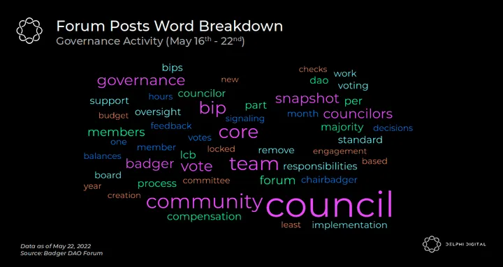 - Our Position: We like this proposal because it is a fleshed-out and straightforward governance process for Badger. Often DAOs create relatively light models that fail to consider all the pitfalls of DAO governance. These light models often lead to adhoc governance that performs well in bull markets when everyone is happy but may not be able to handle the contentiousness caused by bearish price action. The model Badger DAO discusses has many similarities to existing corporate or non-profit governance, which isn’t necessarily bad. Corporate governance arose in its current form because it is effective. Adopting corporate-like governance does bring up the question, though, that if DAOs are re-creating corporate governance, what’s the point? However, we feel that DAO governance is a spectrum between full automation and dependence on outside actors. We expect protocols to slowly become more autonomous in the future when better tools and processes are in place. But in the meantime, we may need to adopt corporate-like governance processes to get us there.